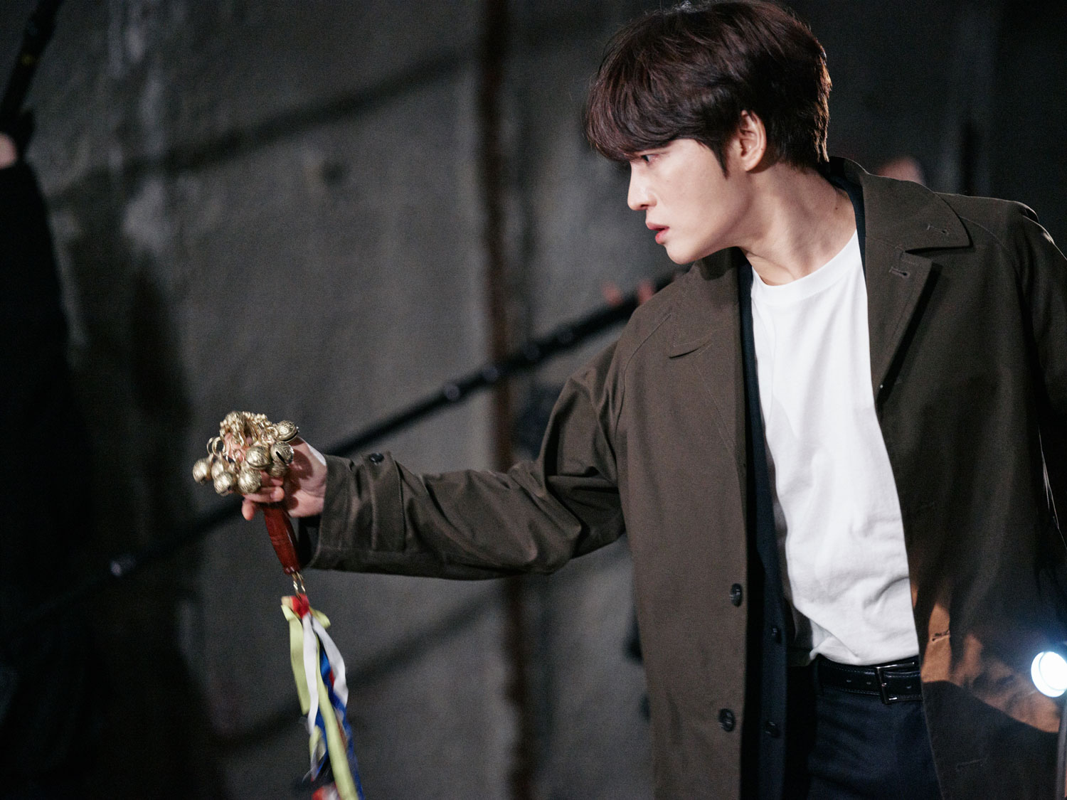 生まれながらに祈祷師となる宿命を負いながら、消えない“過去の影”に囚われる主人公ミョンジンを演じ、キャリア初のホラーに挑むのは、アジアを代表するアーティスト・俳優のジェジュン。神と悪魔の狭間に立つダークヒーロー像を圧倒的な存在感で体現している。この度解禁された場面写真では、祈祷師の祭具である鈴を手にし、真剣な眼差しで何かを見つめている姿が捉えられており、その張り詰めた緊張感がひしひしと伝わってくる。