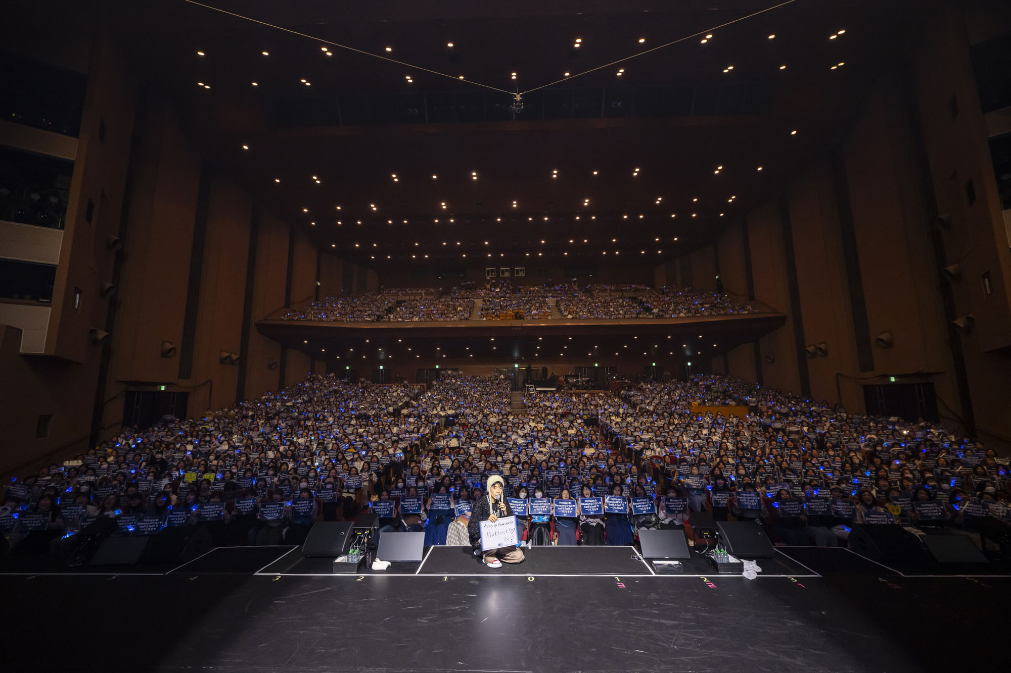 興奮冷めやらぬ中コンサートはアンコールステージへ。「R.O.S.E」でWOOYOUNGが登場したのはなんと2階席。そのまま1階席も練り歩きながら歌い、おおいに盛り上げた。ステージに戻り恒例の記念写真を撮ろうとしたら始まったのは、サプライズ映像。ファンが「HottestのReasonはウヨン♡half とhalfで一つになる♡」と書かれたスローガンも一斉に掲げ、WOOYOUNGを喜ばせた。WOOYOUNGもステージ上で手書きで「ウヨンのReasonはHottest♡」というメッセージを書いて見せ、ファンの想いに応えた。「ずっとずっと皆さんの前で歌えるように頑張ります」と誓い、「Letting You Go」に続いて最後は「MORE」。会場をひとつにして盛り上げたあと、「今年最後の公演を神戸で皆さんと一緒にすることができて光栄です。皆さんよいお年を!」と叫び、深々とお辞儀をして、鳴りやまないウヨンコールの中ステージを去った。WOOYOUNGのアーティスト、エンターテイナーとしての魅力はもちろん、真心がまっすぐ伝わるすばらしいコンサートとなった。2026年、今度はどんなエンターテインメントで我々を楽しませてくれるのか楽しみでならない。