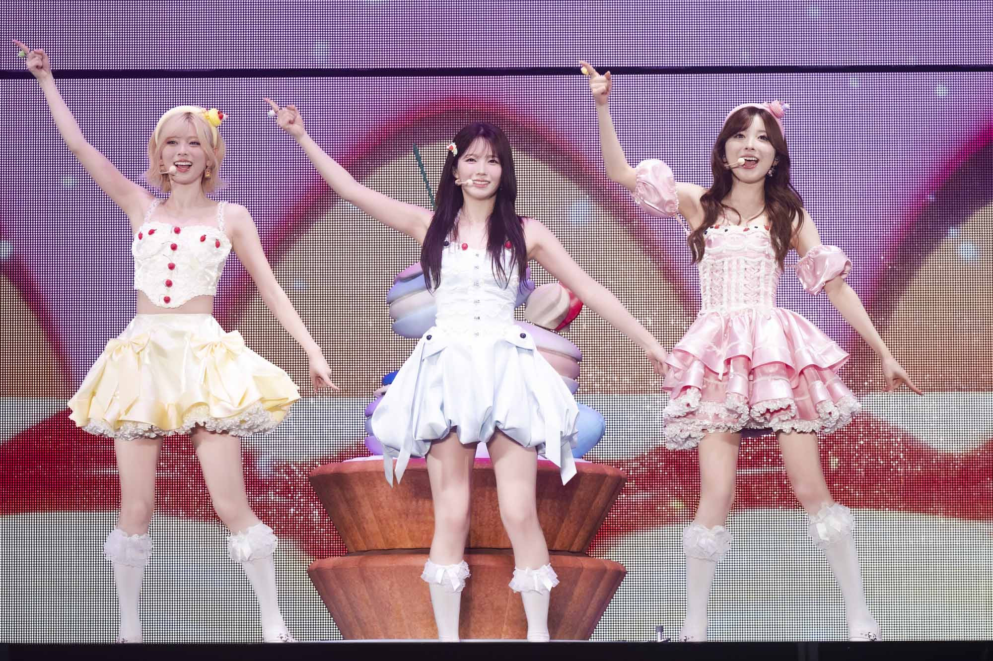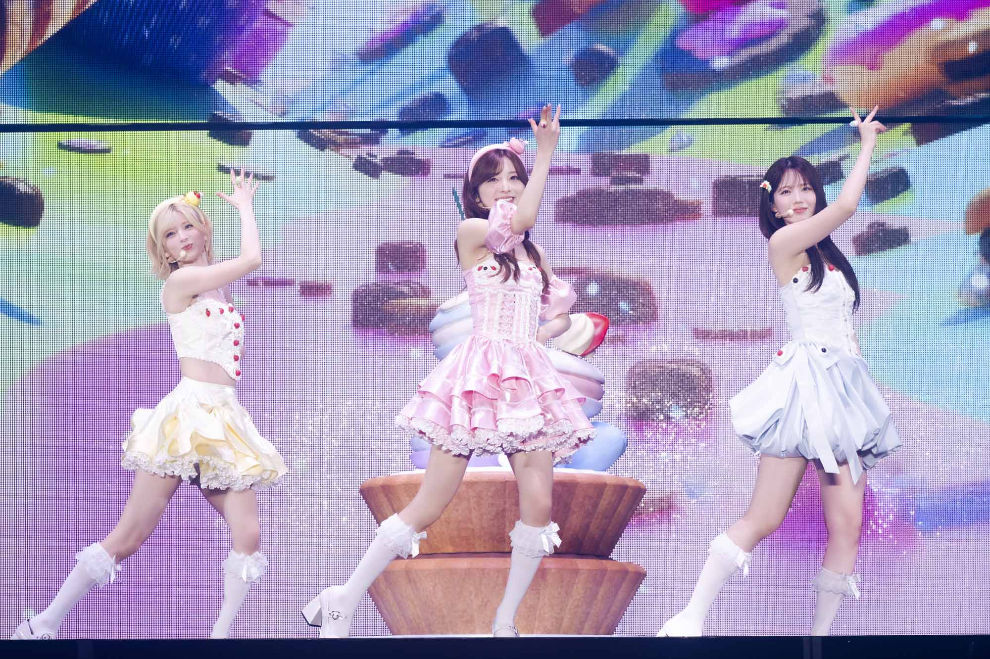 スタイリッシュなVCRとバンドのセッションを経て、ユニットパートに。“悪役”を意味するMAKO、MAYUKA、RIMAによる「VILLAIN」は、ハードさは残しながらもウッドベースなどのサウンドアレンジも加えられジャジーなアレンジが施され、ダンサーとの迫力のあるパフォーマンスは圧巻なものに。RIKU、AYAKA、MIIHIにより「Fairy Magic」は、スイーツを模したセットに乗って“かわいい”に振り切った「THEアイドル」なパフォーマンスでオーディエンスを魅了。さらにRIO、MAYA、NINAによる「Too Much」は妖艶さをそのままに、よりパワフルなダンスを観ることができるパフォーマンスとなり、前述のホールツアーから進化した内容の数々は飽きを与えず観る者の視線を奪ったに違いない。