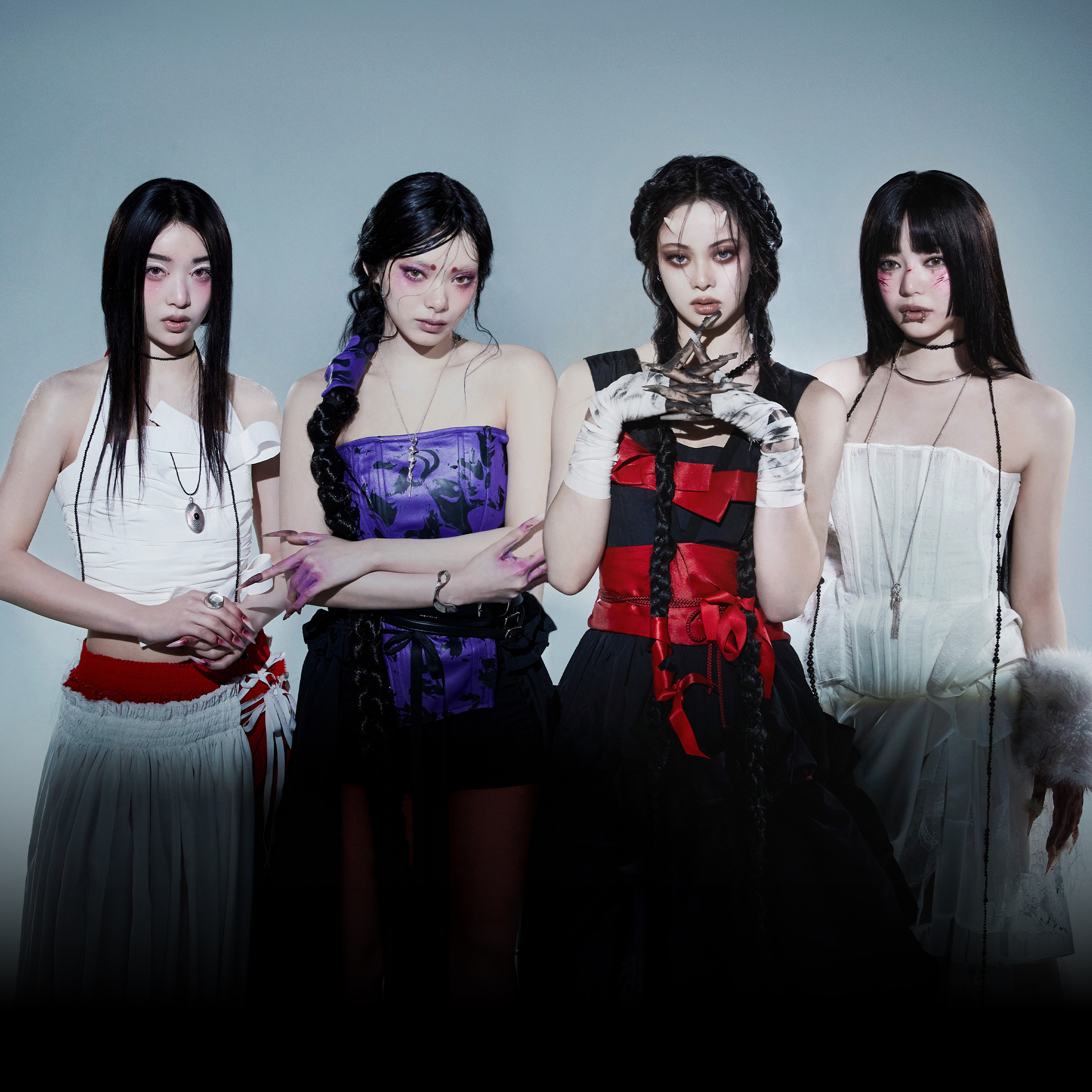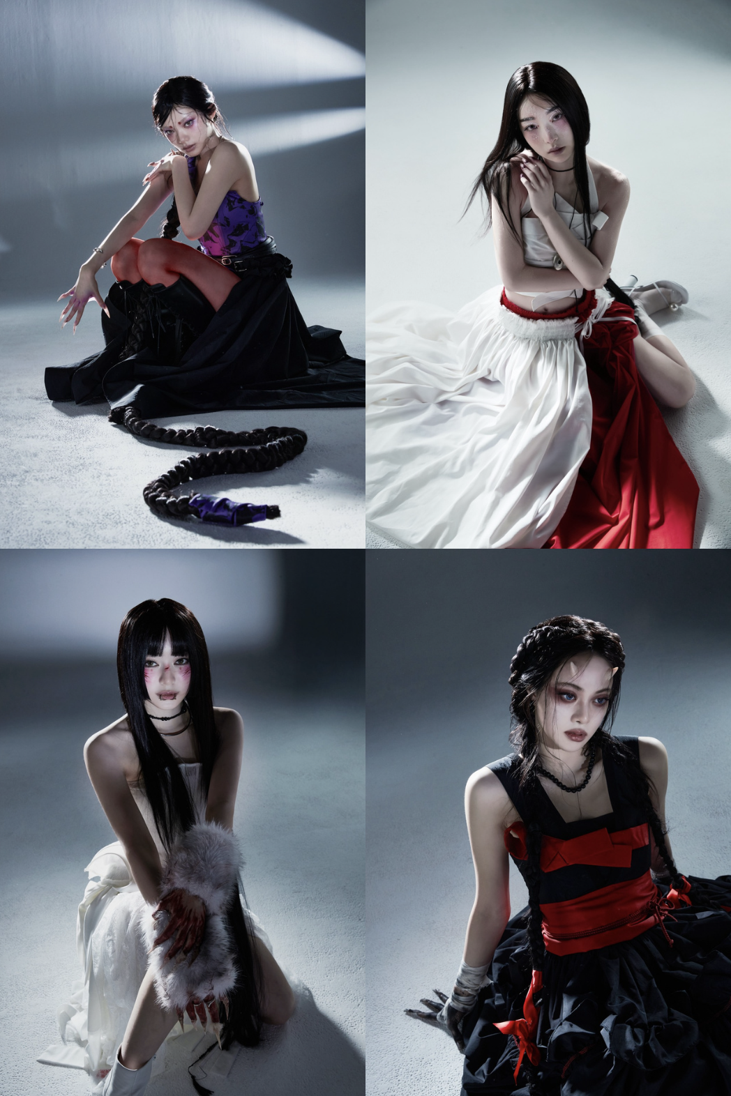二人の鋭い眼差しは並外れている。 RUKAはツインテールに大胆なアクセサリーを合わせてユニークな雰囲気を高め、RORAはレッドトーンのトップスに落ち着いた視線とシックな表情で抑制されたカリスマ性を見せた。