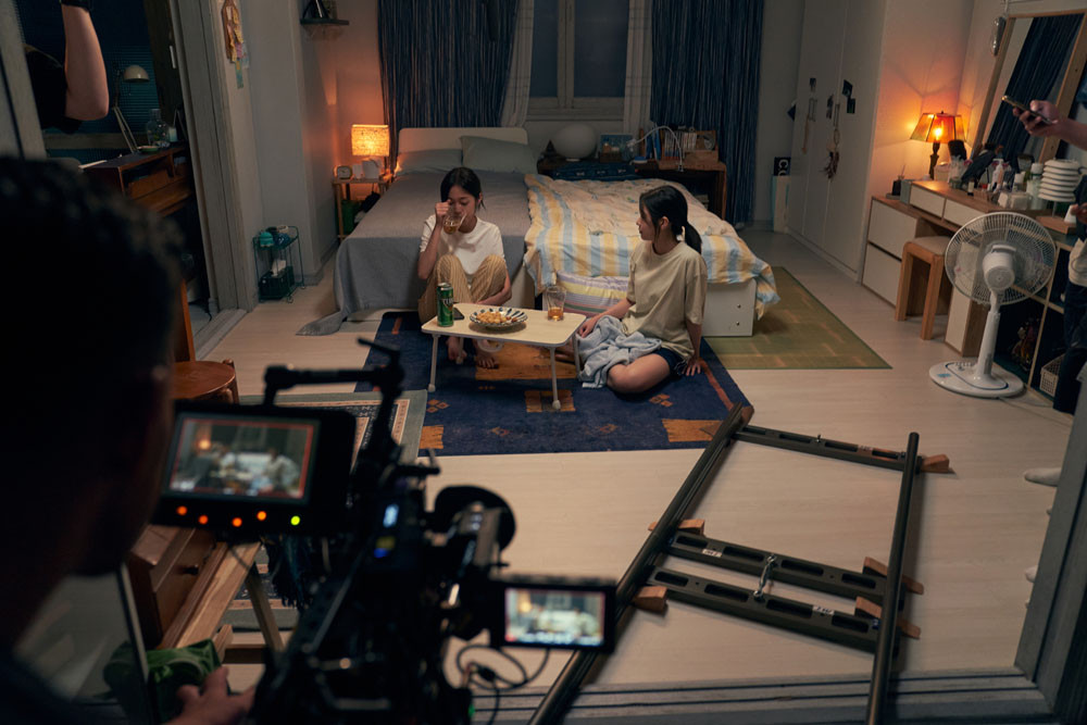 昨年の釜山国際映画祭のプレミアで評判を呼んだ音響演出は、監督の繊細な演出のもと設計された空気感と自然音が特徴的であり、そんな本作の大切なパートを担う音響チームに興味津々のホン・ギョン。映画好きなホン・ギョンの撮影現場への熱意もうかがえる。また、「本当の姉妹みたい」と絶賛の声もあがるノ・ユンソとキム・ミンジュ。夢を支え合う姉妹の雰囲気を醸し出せるようふたりのシーンでもお互いリラックスしながら、撮影にのぞんでいたこともうかがえる。
