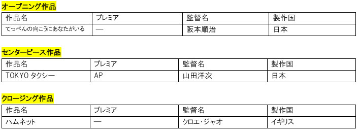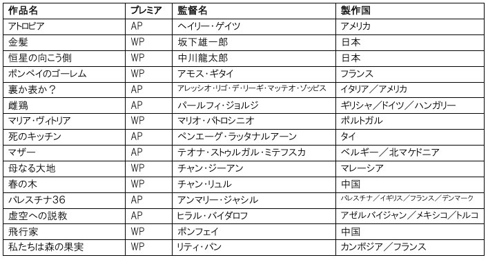 WP=ワールド・プレミア AP=アジアン・プレミア