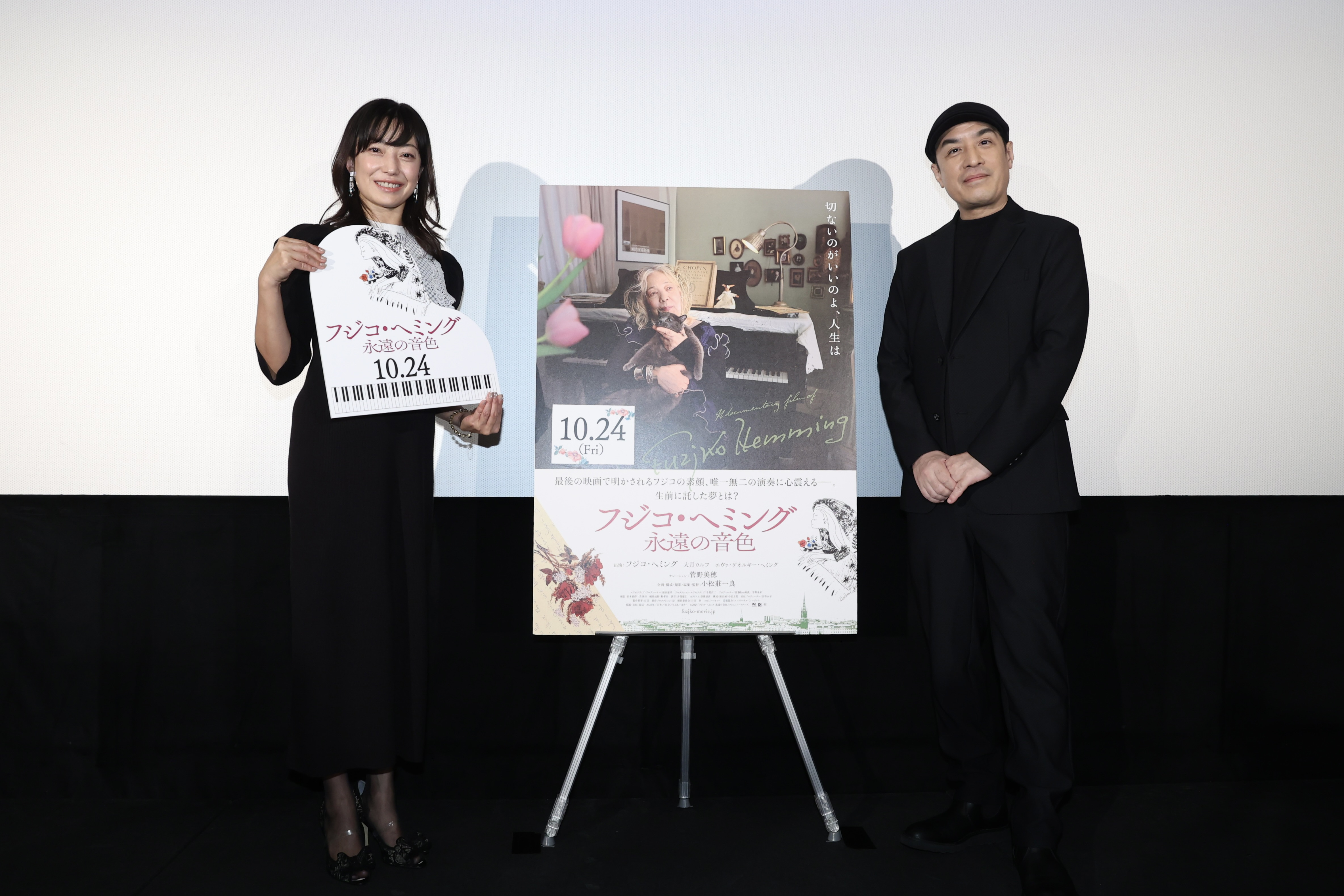 この度、“魂のピアニスト”フジコ・ヘミングのその⽣き様と美しい音色が刻まれた最後のドキュメンタリー映画、『フジコ・ヘミング 永遠の音色』(10/24公開)のプレミア上映会舞台挨拶を10⽉7⽇(⽕)にヒューマントラストシネマ渋⾕にて開催。上映後の舞台挨拶に、本作のナレーションを務めた菅野美穂と、12年間フジコ・ヘミングを追い続けた⼩松莊⼀良監督が登壇しました。