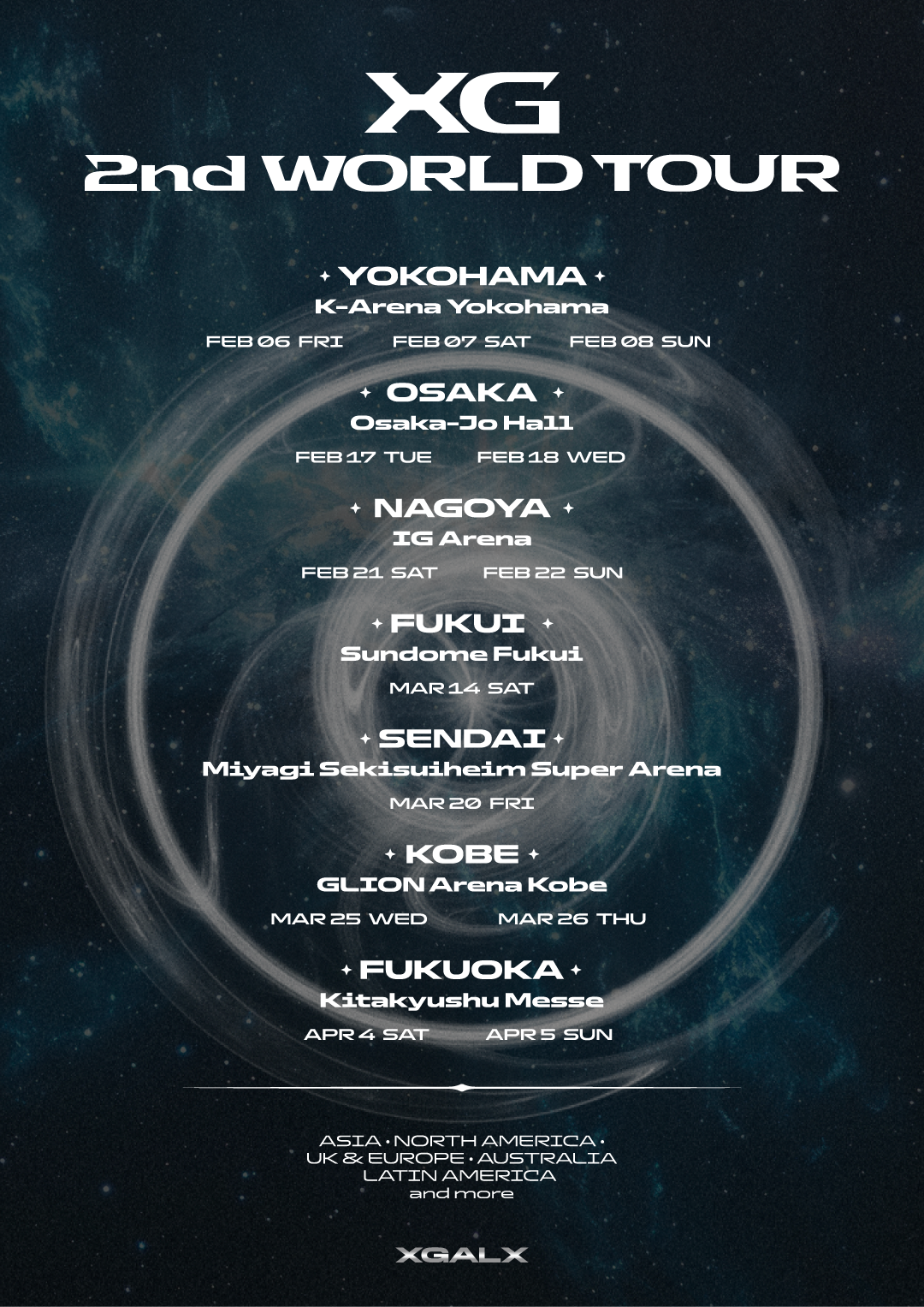 そんな大盛況のファースト・ワールドツアー終幕から1年経らずでの開催となるセカンド・ワールドツアーは、来年1月23日のファースト・フルアルバムを発売して迎える初のツアーとして、XGが創り出す新たなジャンル"X-POP"を、唯一無二の世界観と圧倒的なパフォーマンスで証明し、XGの真髄に迫る。