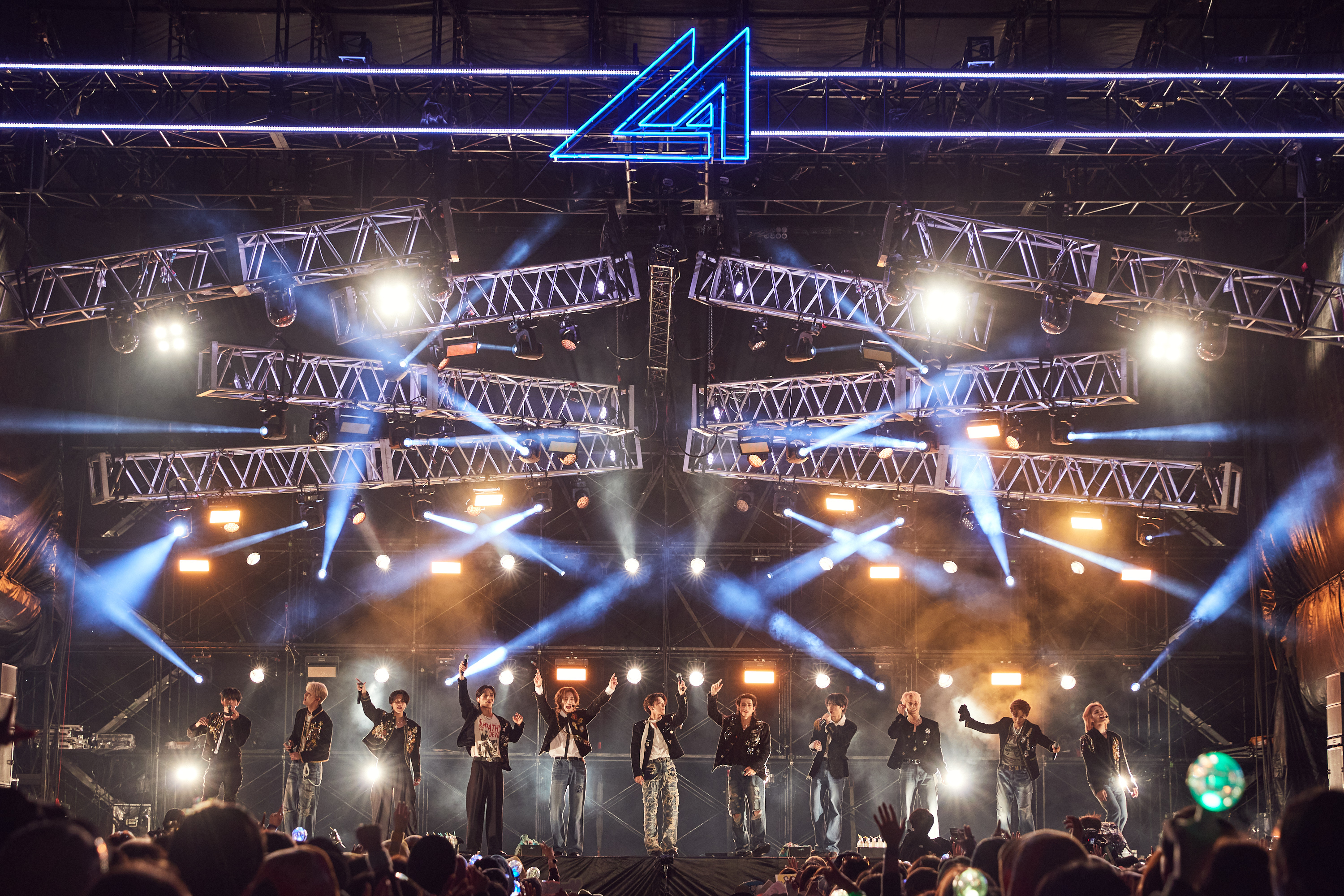 池﨑が“AZUMA”コールや“INI”コールで会場を一つにし、その勢いのまま「Party Goes On」へ。フェスならではの熱量で会場全体を巻き込むと、4THSINGLE収録曲「INItialize」、最新アルバムから「What A Night」と幅広いジャンルの楽曲でINIらしいステージを繰り広げ、会場の空気をINI色に染めていきました。
