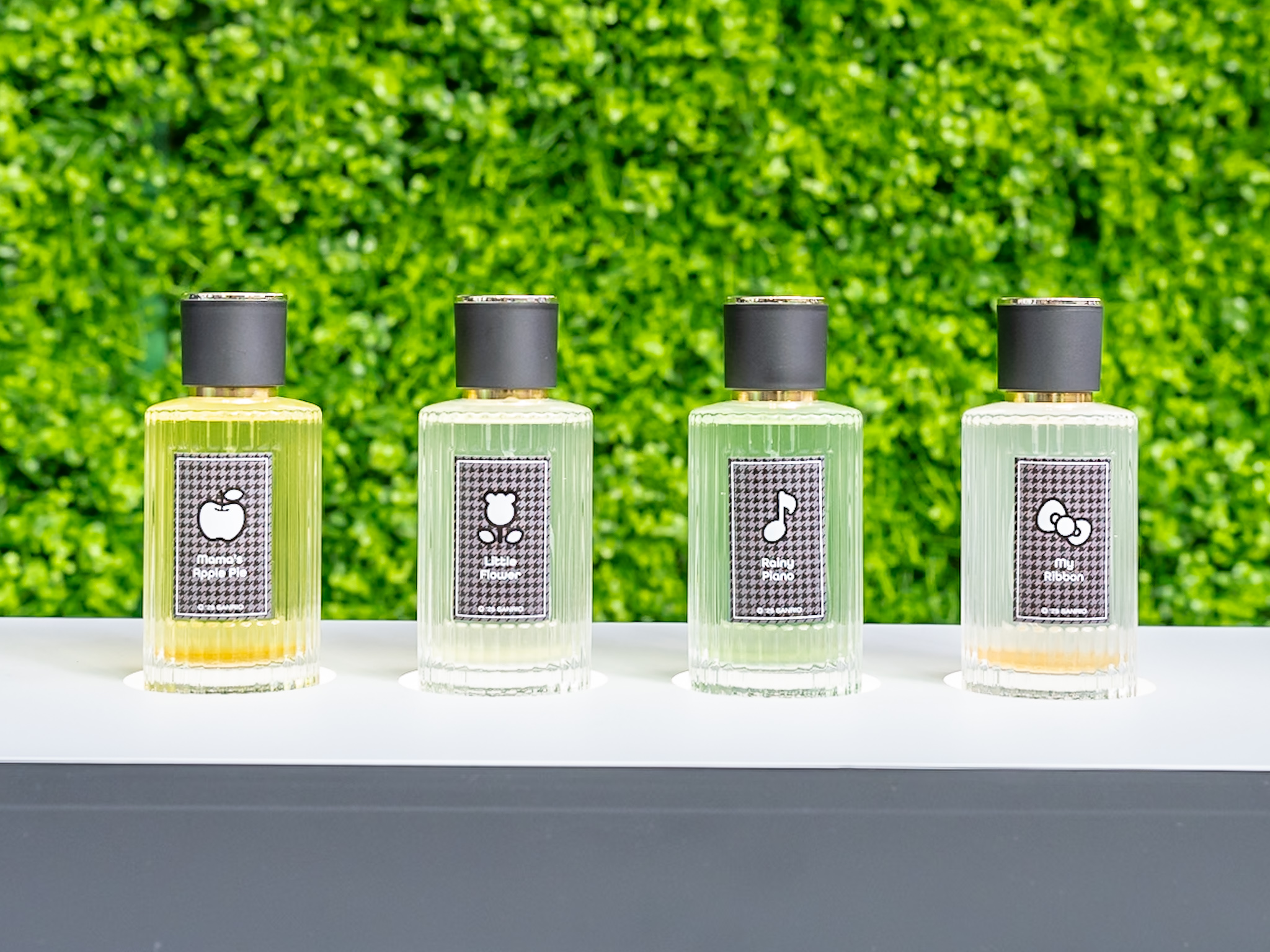 高さ約2メートルのハローキティのフェイス形のゲートを抜けると、ロンドン郊外出身のプロフィールを持つハローキティにちなんだイングリッシュガーデンをイメージした空間と、千鳥格子を基調としたシックなデザインを掛け合わせたフォトジェニックな「ピクニックエリア」が広がります。「りんごの木」や、ハローキティと写真が撮れる「フォトスペース」、そして「フレグランスエリア」では、その日のあなたの気分に合った香りのミニボトルをギフトとして受け取れるなど、心ときめくコンテンツが満載です。