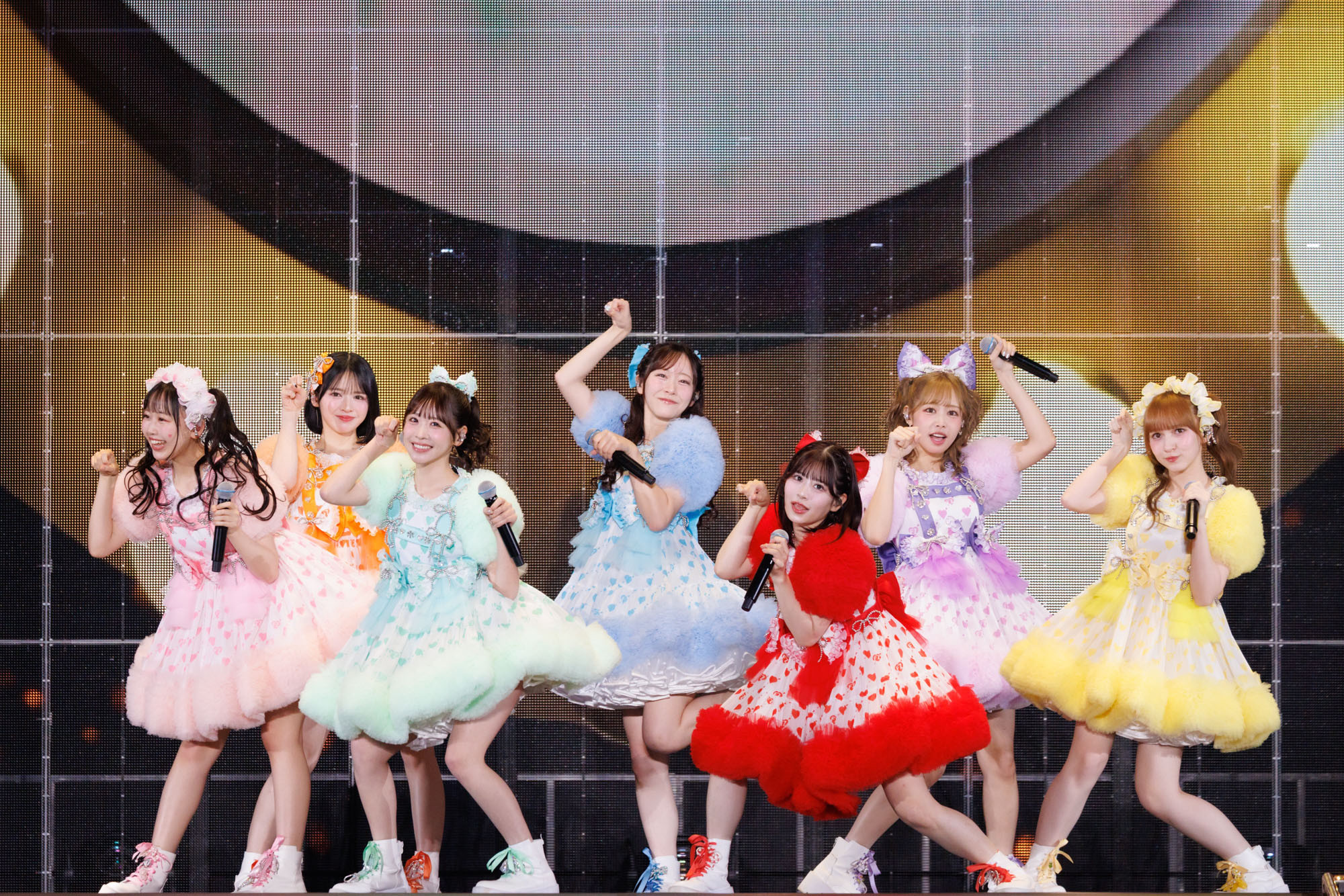 開演時刻になると、MCの山里亮太(南海キャンディーズ)による呼び込みでステージに出演者が勢ぞろい。オープニングパートが終わるとCUTIE STREETによる「かわいいだけじゃだめですか?」のパフォーマンスでKAWAII LAB.のステージがスタートした。SWEET STEADYは片思いソング「YAKIMOCHI」、CANDY TUNEはヒット曲「倍倍FIGHT!」を披露。来年2月に東京ドームで単独公演の開催が決定しているKAWAII LAB.の“長女”FRUITS ZIPPERは「かがみ」でキュートな世界を作り上げ、後輩たちを呼び込み総勢29名による「わたしの一番かわいいところ」でステージを締めくくった。