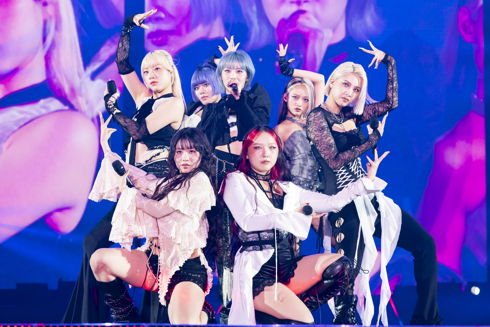KiiiKiiiはまるで映画のような質感のミュージックビデオとレトロなシンセポップサウンドで、この夏、鮮烈な印象を残した「DANCING ALONE」で東京ドームにさわやかな風を吹かせる。続く「BTG」では先ほどまでの清涼感たっぷりの空気をヒップホップ色の強いサウンドと挑発的なラップで一気に塗り替え、最後はドリーミーなシンセポップ「I DO ME」を紙吹雪の中で軽やかに踊ってみせた。