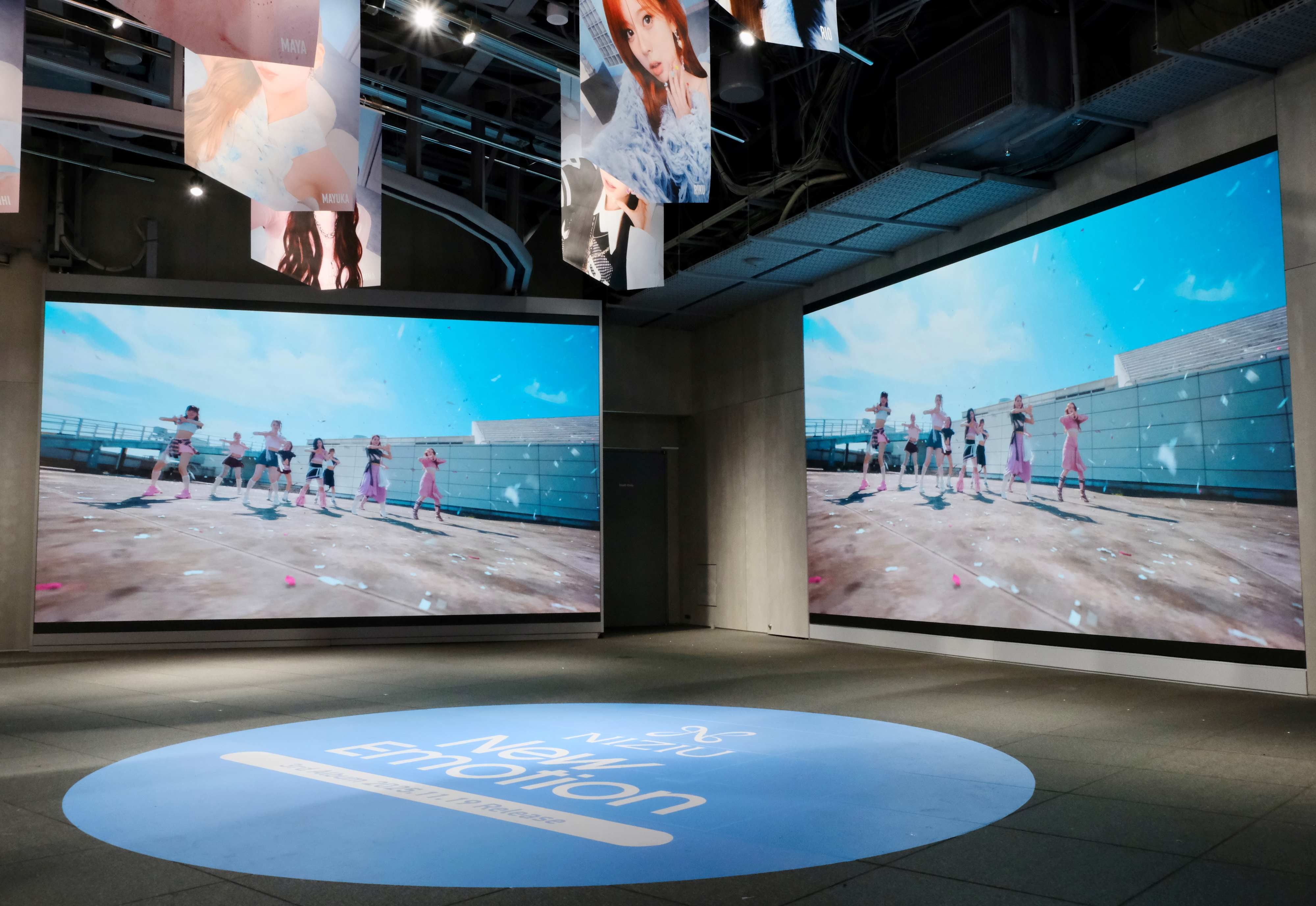 店内大型ビジョンでのアルバムトレーラー・ミュージックビデオ映像放映や、最新作『New Emotion』のアルバムジャケット、「♡Emotion」ミュージックビデオ制作時に着用した衣装やネイルの展示、店舗の外壁を含む全てをNiziUのビジュアルで展開。