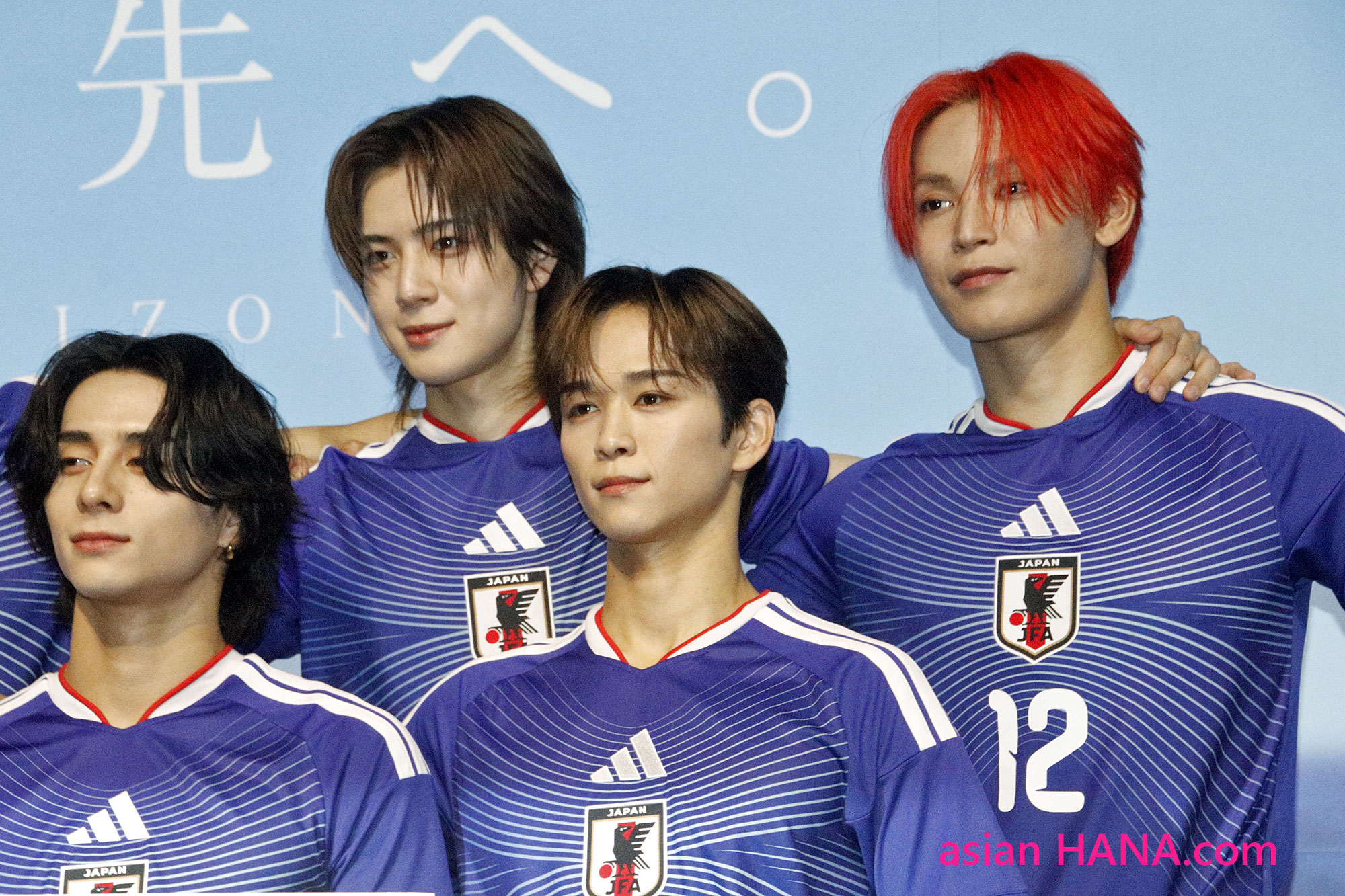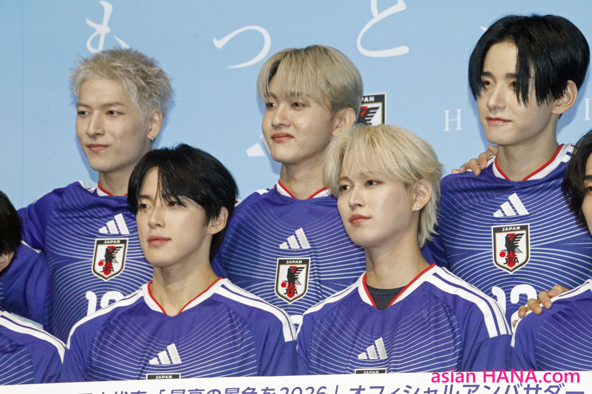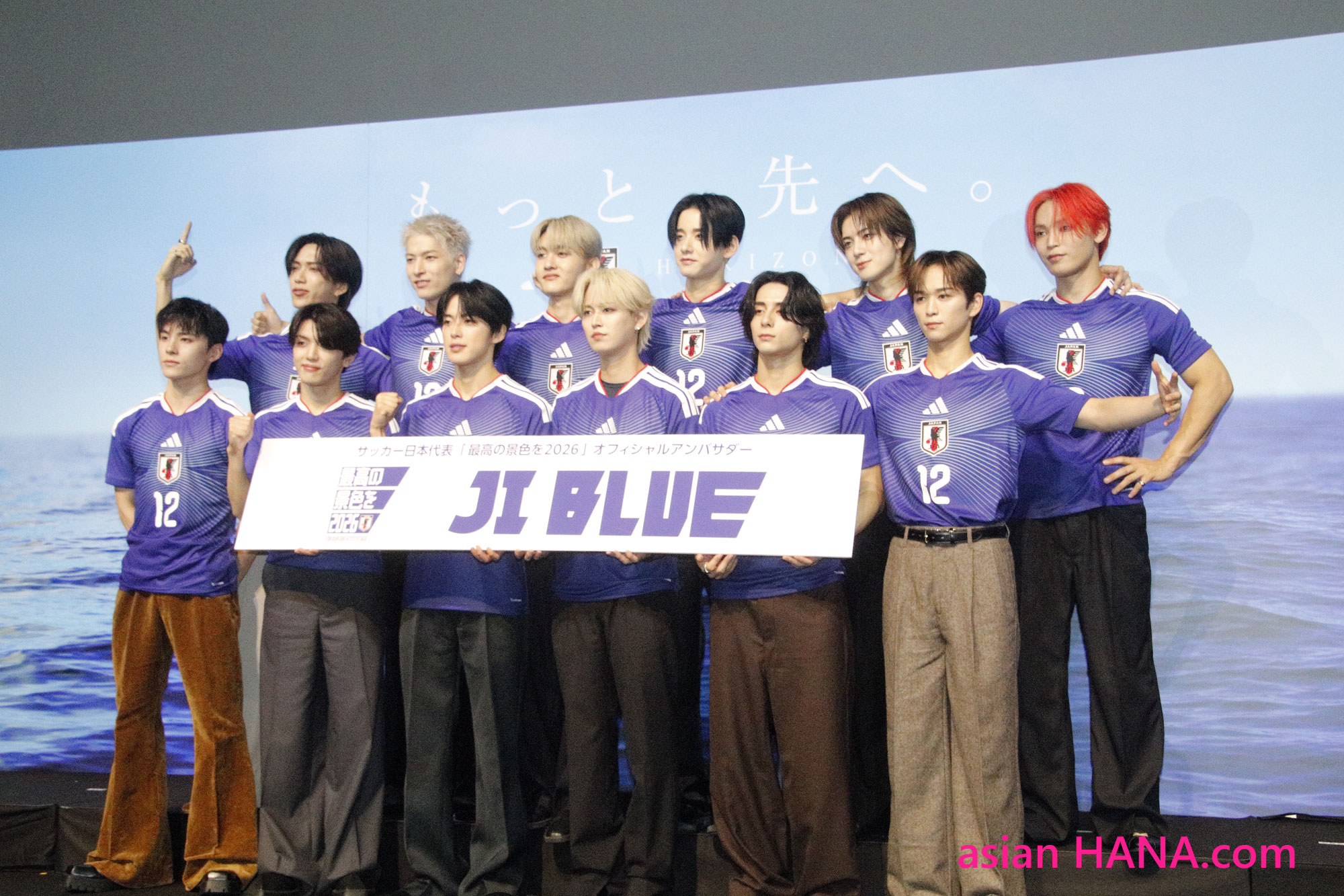 サッカー日本代表『最高の景色を2026』オフィシャルアンバサダー」にJO1・INIからスペシャルユニット「JI BLUE(ジェイアイ ブルー)」が就任し、11月10日都内にて開催されたJAF・アディダス「サッカー日本代表 2026」キャンペーン共同発表会に與那城奨、 西洸人、 白岩瑠姫、河野純喜、 佐藤景瑚、 田島将吾、 髙塚大夢 、後藤威尊 、川西拓実、 金城碧海、 佐野雄大、 池﨑理人が登壇した。