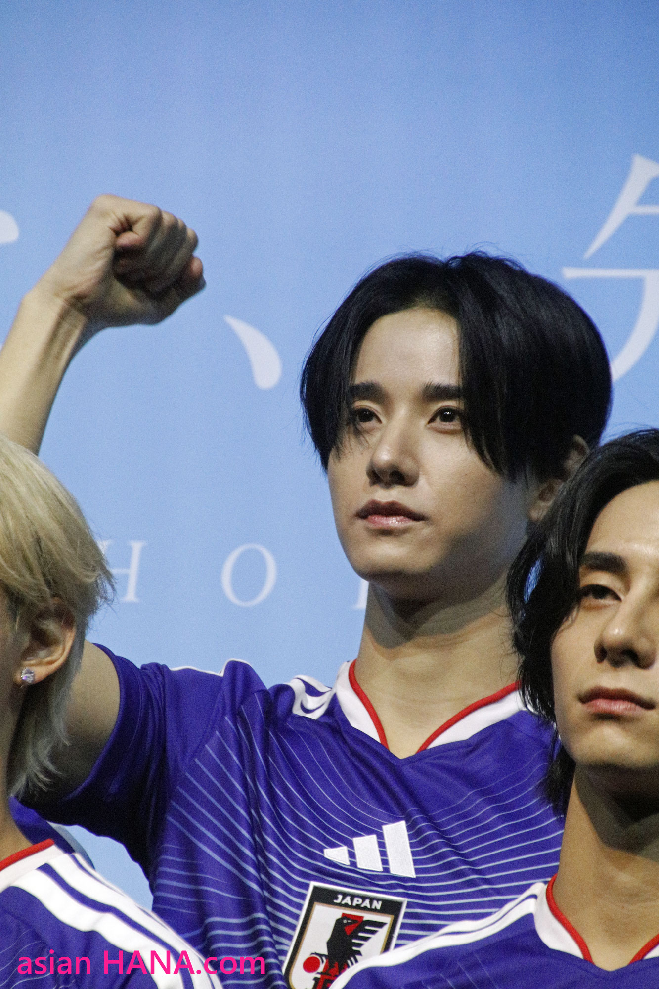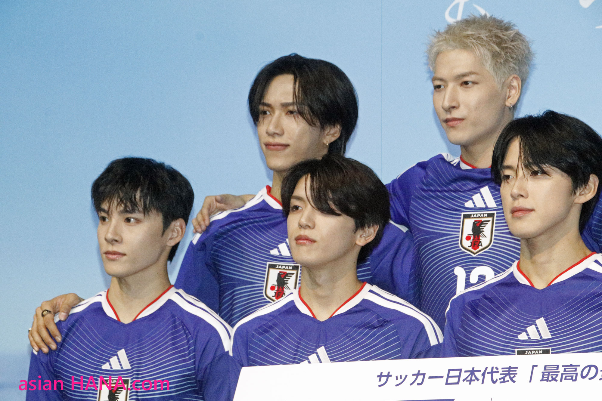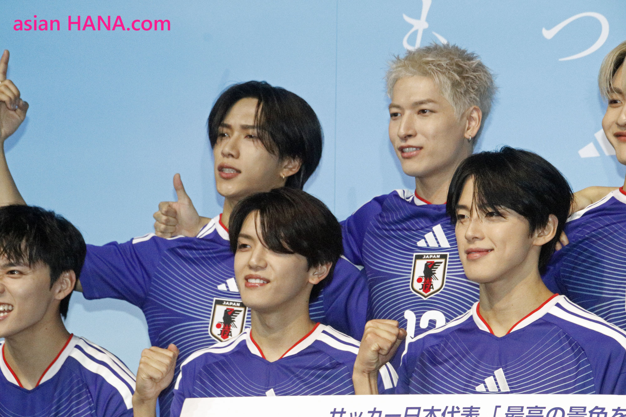 サッカー日本代表『最高の景色を2026』オフィシャルアンバサダー」JO1・INIからスペシャルユニットの「JI BLUE(ジェイアイ ブルー)」が登壇。
