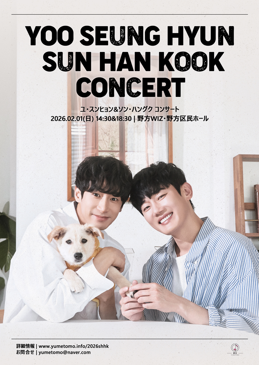 2023年9月の夢友企画コンサート「東京都大学路」を皮切りに、「夢友10周年記念韓国コンサート」「ユ・スンヒョン&アン・ジェヨン コンサート」など、これまで数々の公演で夢友と共に歩んできたユ・スンヒョン。今回は後輩のソン・ハングク と共に、新たな姿でステージを彩る。ソン・ハングク は、ミュージカル『ベン・ハー』『ミア・ファミリア』『ビスティ』『グーテンベルク』など、様々な作品で強い存在感を発揮してきた俳優であり、最近では再生回数6600万回を超える大ヒットを記録したミュージカル『小人たち』のショート動画で主役を務め、話題を集めた。