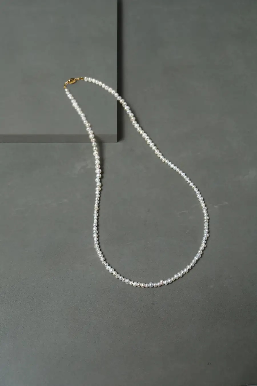淡水パールが一周して連なった、上品さを演出するネックレス。