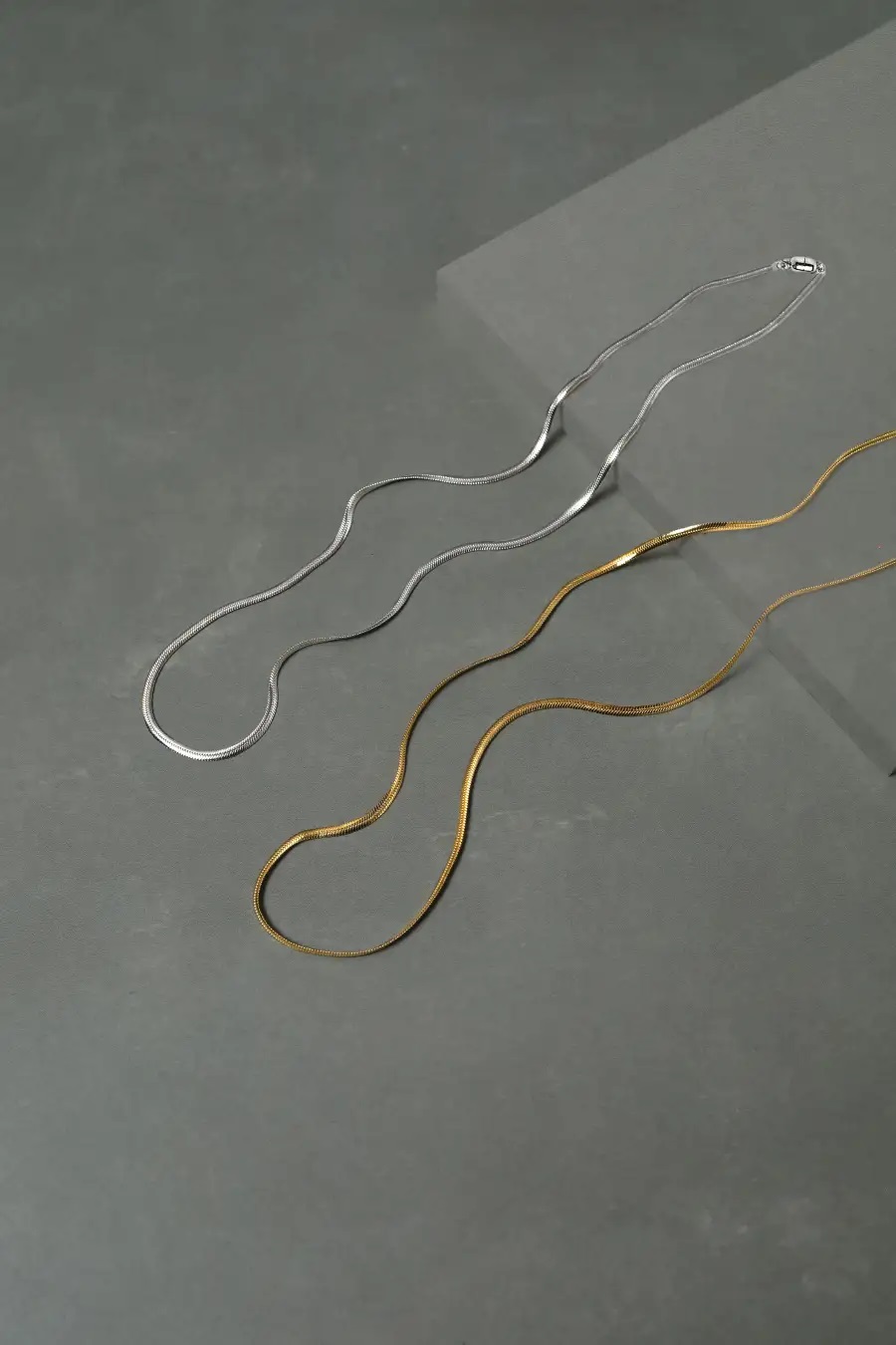 どこまでもシンプルさを追求したスネイクチェーンネックレス。