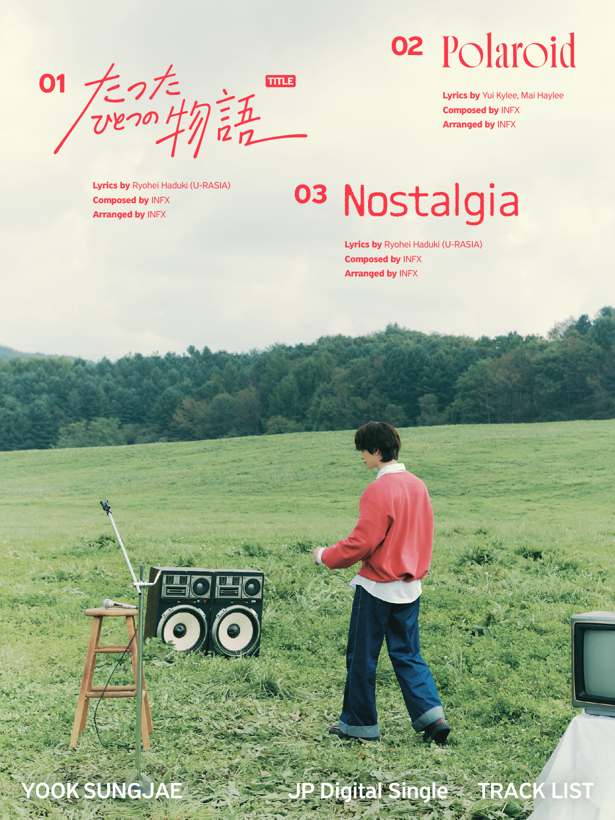 今回のデジタルシングルは3曲の日本オリジナル楽曲で構成されている。表題曲『たったひとつの物語』は疾走感のあるサウンドと前向きなメッセージが引き立つロックナンバー。『Polaroid』はピアノとエレキギターの旋律が交わる切ないロックバラード。『Nostalgia』はタイトル通り叙情的で懐かしさ漂うノスタルジックな楽曲で、ユク・ソンジェならではのJ-ROCK を堪能することができる。