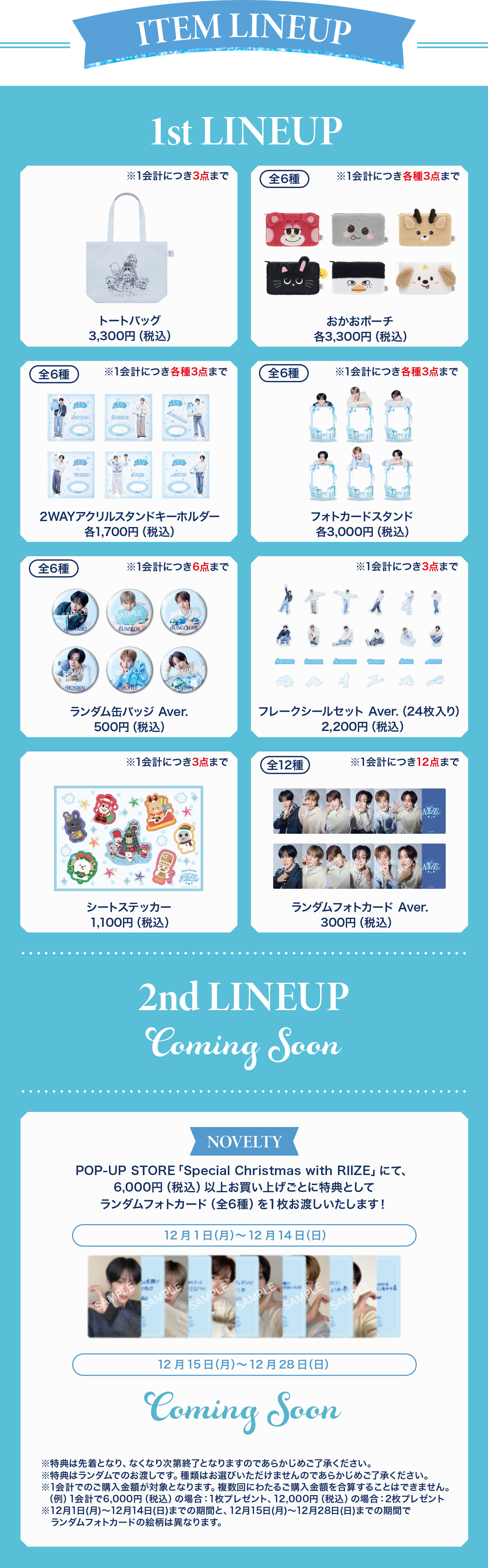 店舗では撮り下ろしビジュアルを使用した商品や、クリスマス仕様になった『WE LITTLE RIIZE』も登場いたします。