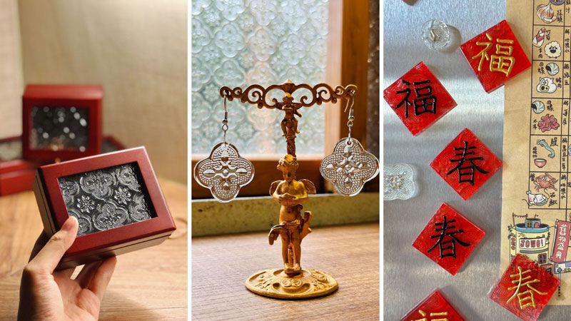 昔ながらの台湾家屋で見かける伝統的なベゴニア柄ガラス。実際の古い家屋から取り外された窓ガラスや木材を使って現代の生活にも取り入れやすいアクセサリーやインテリア雑貨として提案。
