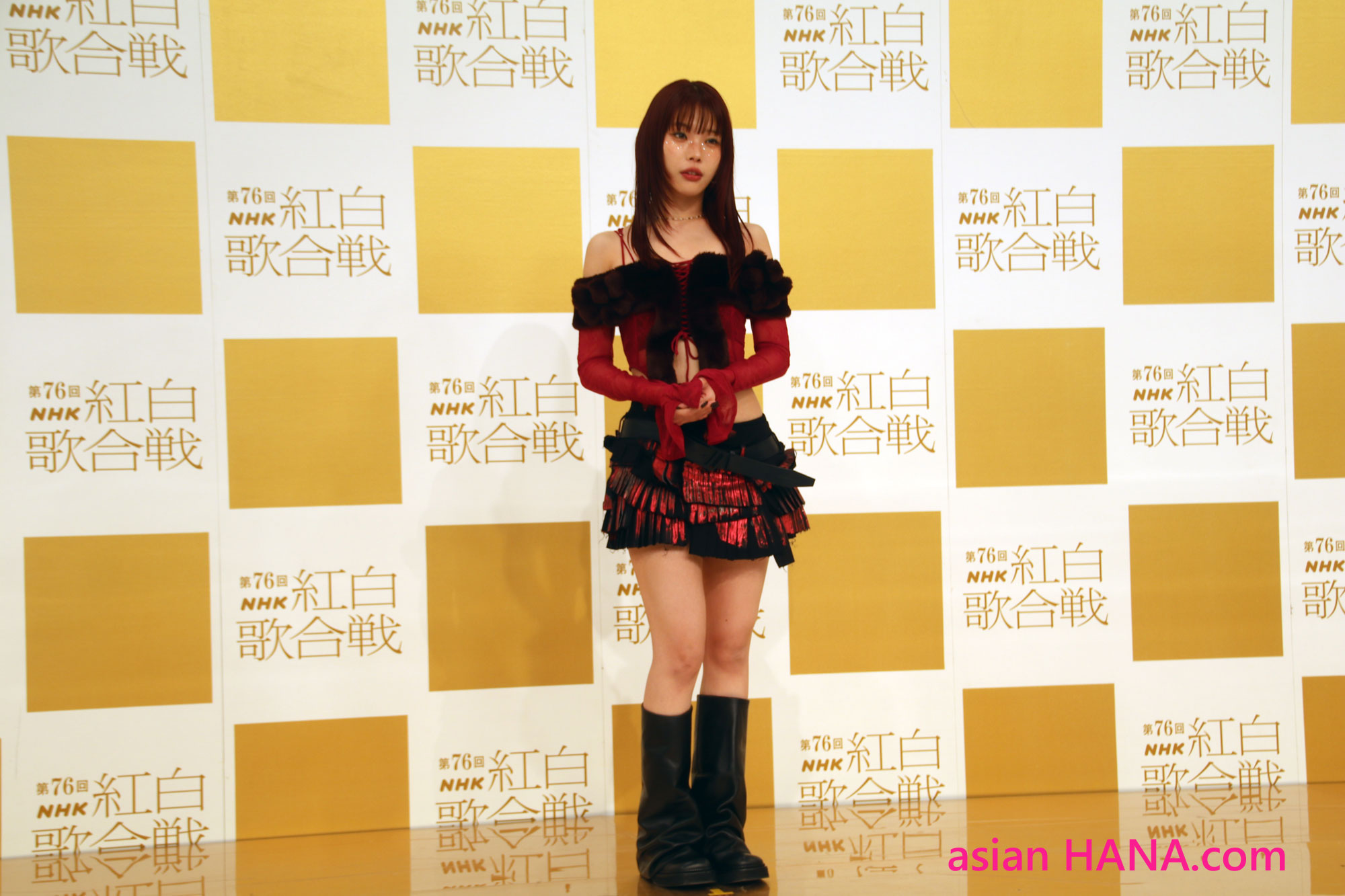 以前BiSHとして紅白に出したことがあるアイナ・ジ・エンドは紅白への意気込みに対して「日本の伝統がある番組で年に1回の歌のお祭りの番組なので精一杯、恥のないようにやりきりたいです」と気合の入っている様子。リハーサルでの衣装で登場をしたがこの衣装は最新の曲“革命道中”での衣装となる。本番ではメイクや衣装にも気合が入っているとのことで、「一生で一番キレイで、ちょっと毒のある衣装を用意した」と楽しみになるような回答をした。今回の紅白で楽しみにしていることは?という質問に対して「BiSHで出た時に本番前にハンバーガーが食べられなかったので、今回は本番前に好きなものを食べられるようにしたいです」とたくさん食べる一面も見せました。今年1年を振り返ると「歌で生きていくと決めて10年経ちました。これからも、11年、それ以降も歌っていけるように頑張っていこうと思います。感謝が一番深くできるようになった年でした」と語りました。今年の漢字1文字は『迸』とし、「種をまいてこれました。色んな人が水をくれて、芽が出た気がします。芽が出たところがエネルギッシュでした。来年は変な形でもいいので私らしい花を見つけてみたいです」と来年に対しての想いも伝えてくれました。