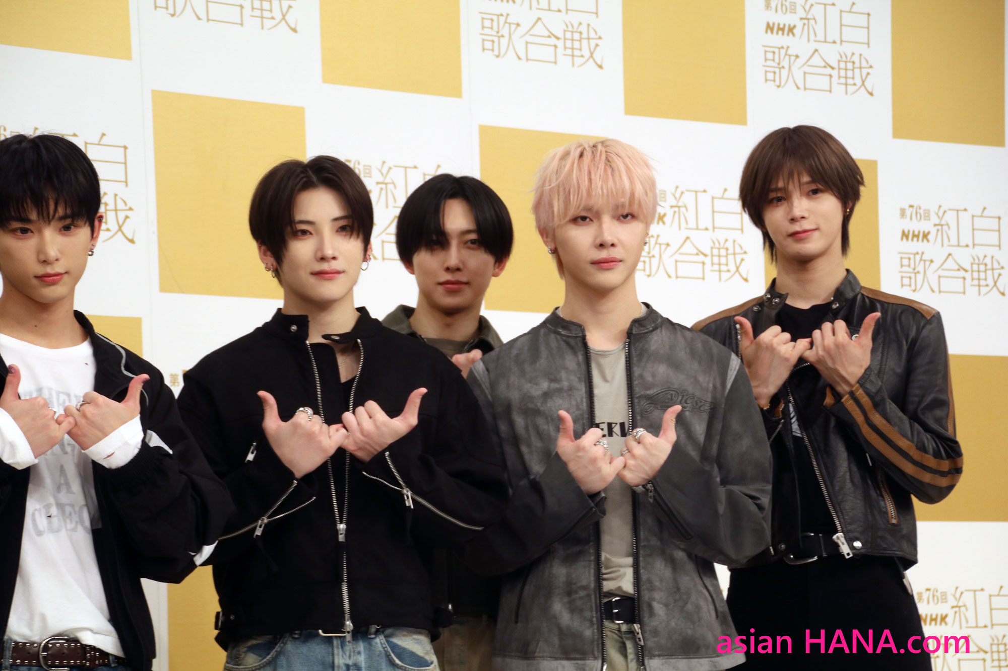 今年の1年を漢字1文字にするとEJ「『縁』です。今年初めてアジアツアーを周り、色んな所に行って、色んな経験をして、僕たちの縁で僕たちのパフォーマンスで人と人を繋げられた一年でした。色んな活動をしてたくさん思い出が残りましたけど、今年最後の日に紅白歌合戦で僕達の最高の思い出をつくりたいです」と締めくくりました。