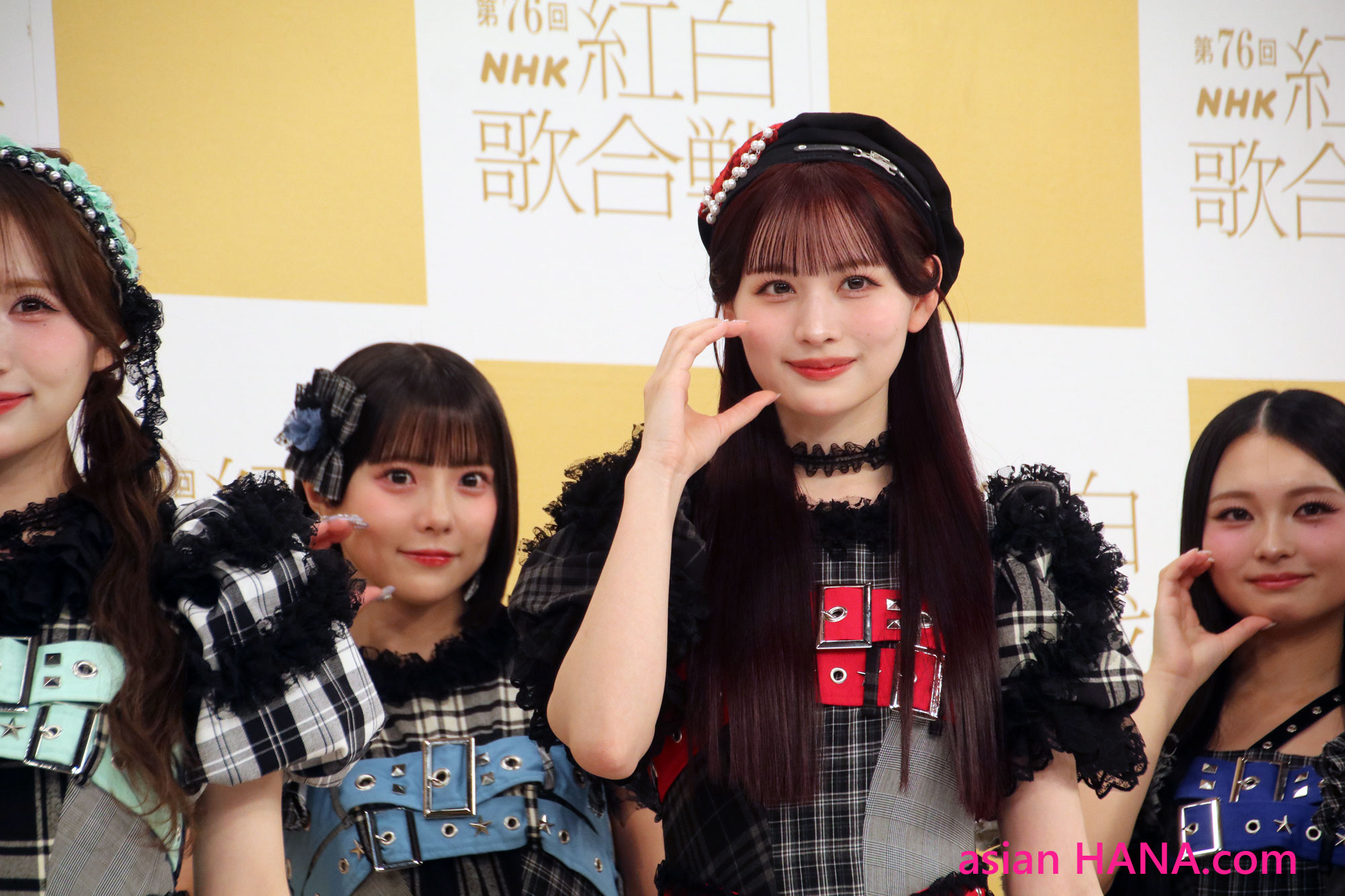 トップバッターでどうでしょうかという問いかけに対して、村川緋杏「私たちはFRUITS ZIPPERになりたくてKAWAII LAB.に入ったといっても過言ではないので、姉さん方と同じ年に一緒に初出場、2曲連続ということでありがたいですし、姉さん方の背中を追いかけてきたので年末の大舞台に立てることは本当に嬉しいです。」衣装に関して村川緋杏「スペシャルな紅白衣装を用意していただいているので、来年まで忘れられない衣装となっているのでお見逃しなく」と衣装にも注目。
